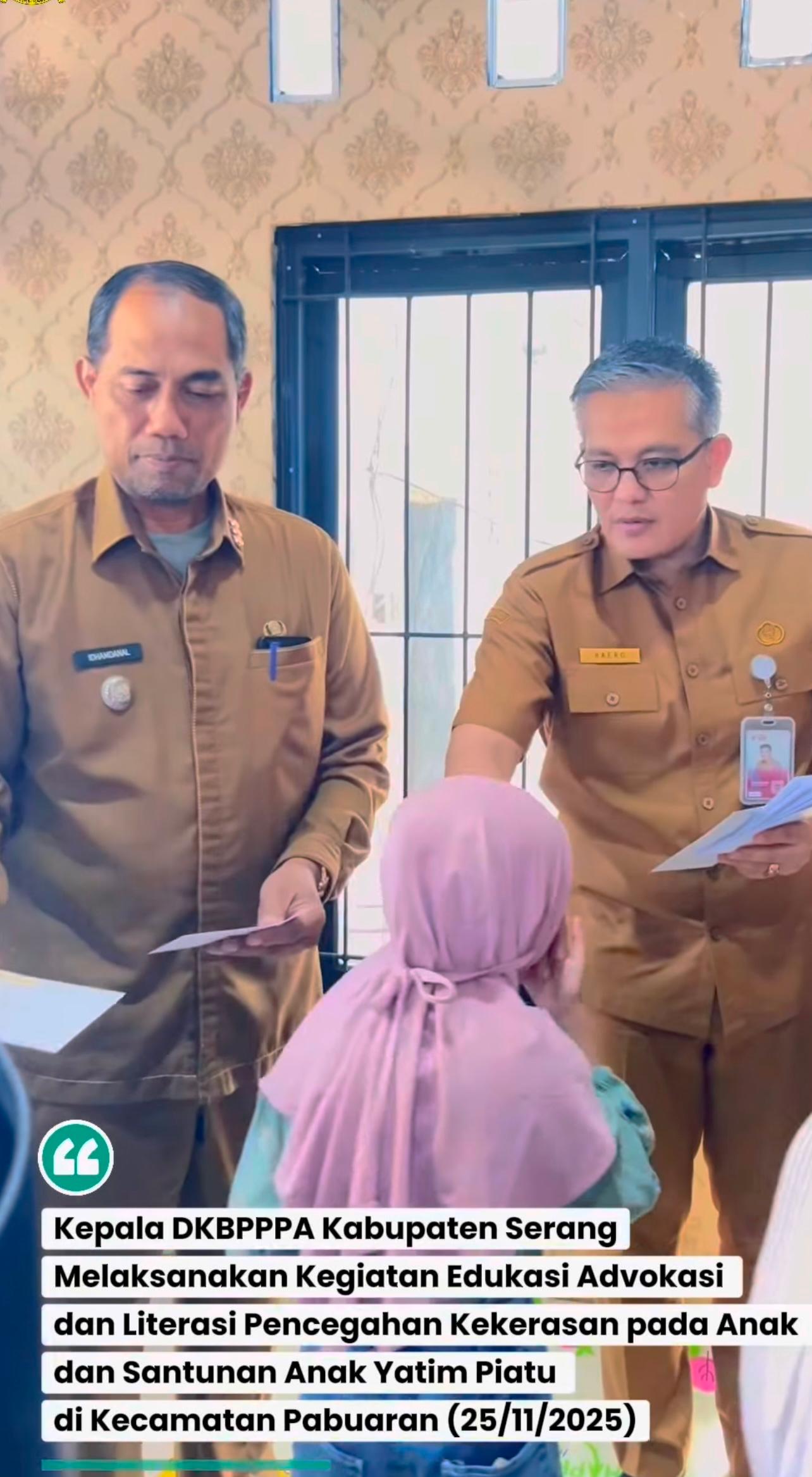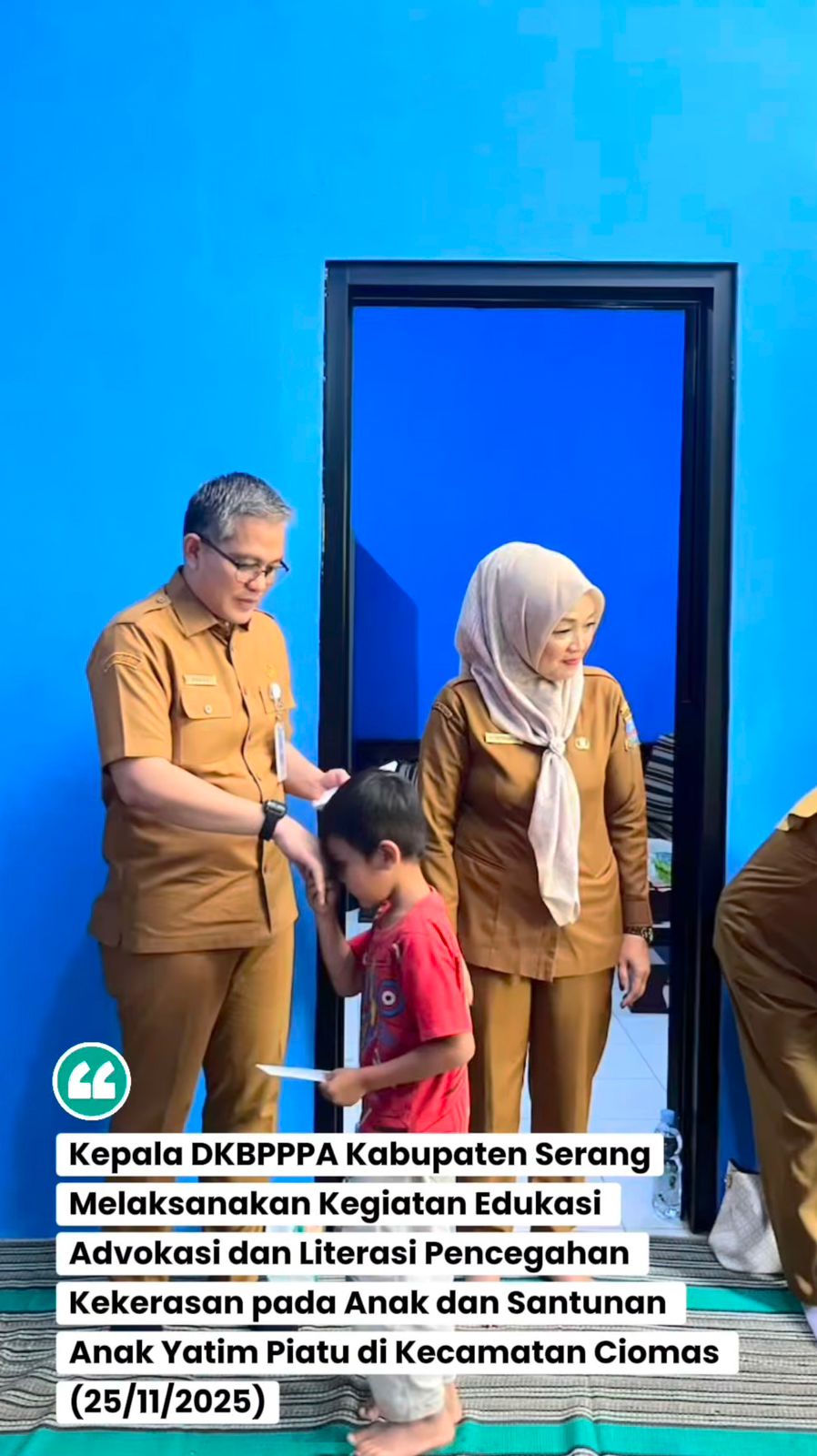 pada kesempatan ini juga dilakukan acara santunan kepada anak - anak yatim yang diberikan oleh Kepala DKBPPPA Kab. Serang.